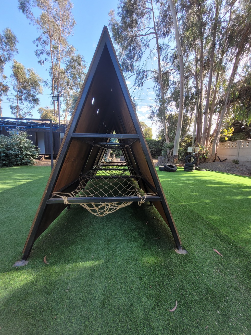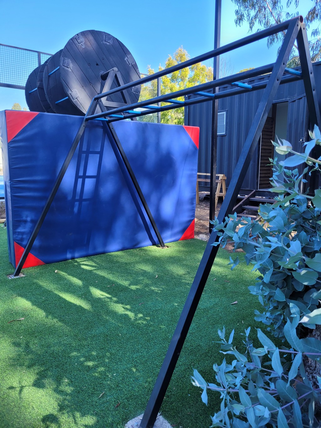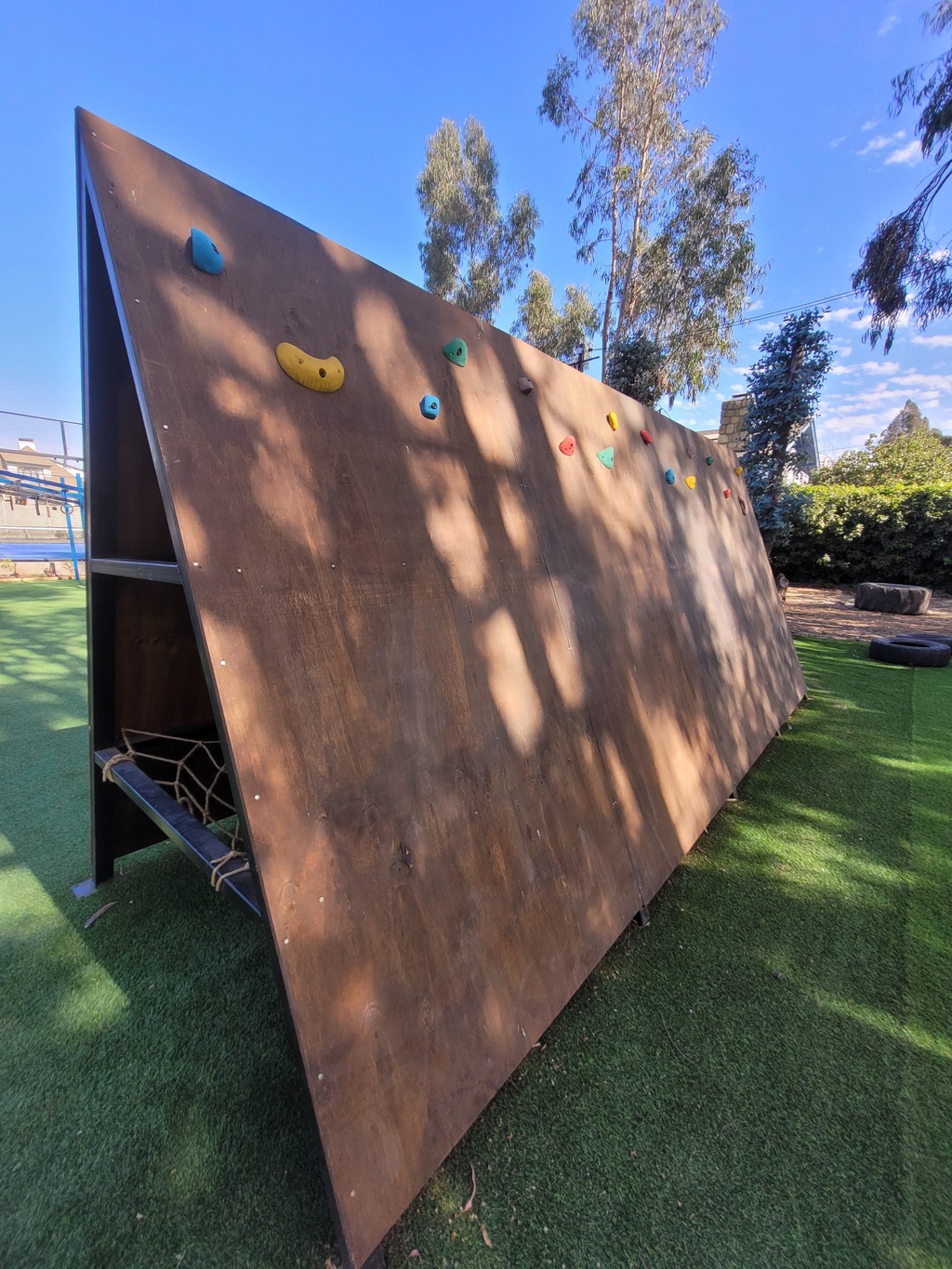 Trepa y desciende esta estructura inclinada, mejorando tu confianza en obstáculos verticales.