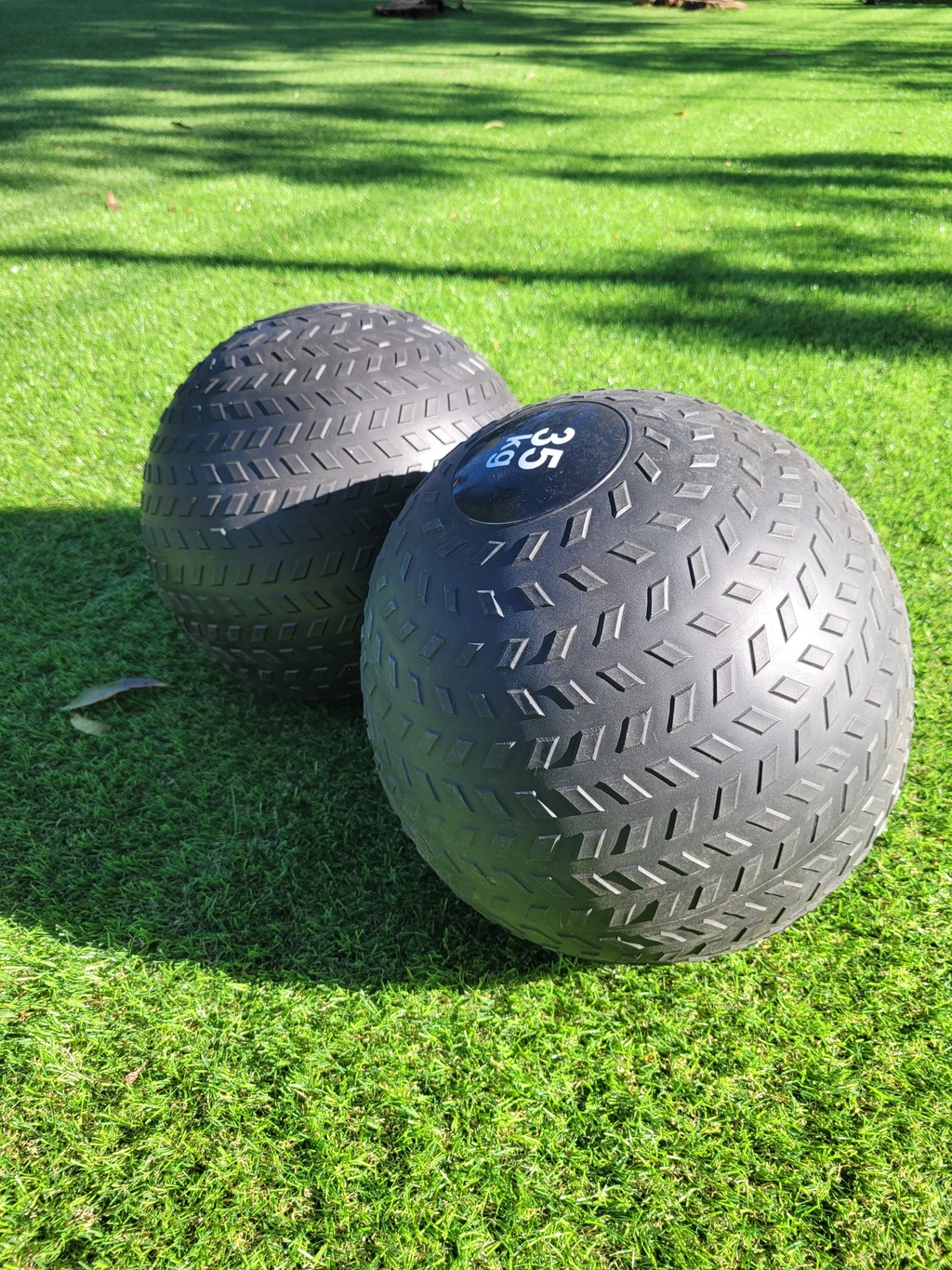 Pon a prueba tu fuerza explosiva y potencia al levantar y lanzar una pelota pesada contra el suelo. ¡Perfecto para liberar energía y trabajar todo tu cuerpo!